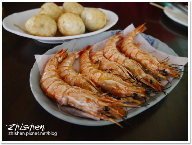 台灣鯛是在魚腸肚塞滿薑絲蔥段,再以鹽焗方式火烤的,外皮烤得脆硬,不過店家很貼心,已將魚皮沿邊緣畫開,客人只要順手開寶享用即可XD