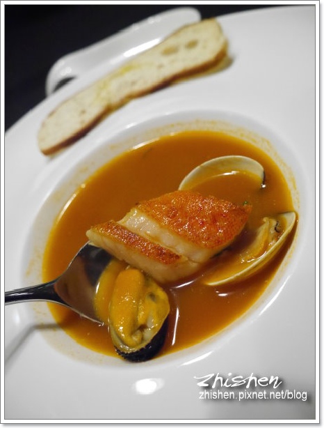 義式傳統海鮮以濃郁的海鮮鮮香著稱,入口後深層且豐富的鮮味及鮮香在嘴中漸漸化開是這海鮮湯最為迷人之處,搭配的海鮮有石狗公、淡菜及新鮮蛤蜊固然新鮮,鮮味及口感極佳,但相較於湯…它們絕對只是最佳綠葉,以豐厚海鮮燉煮出的橙色高湯才是NO.1主角![]()