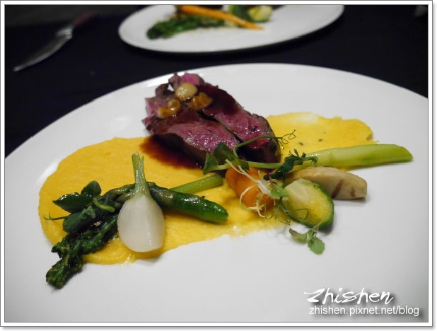 底下襯的奶油甜薯泥則是有清新的甜度和綿密的口感,配著牛肉和食蔬都很不錯!搭配的蔬菜調味適中,更以各自口感和特殊風味作最好的角色搭配!