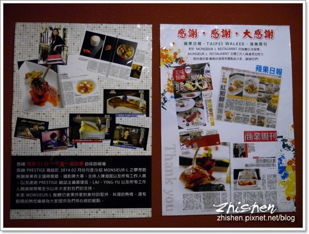 【Monsieur L Restaurant】(Monsieur是先生的意思:對法國男生的尊稱-以上資料來自YAHOO字典XD)是魯先後看了幾個大咖的美食分享文後決定上門試試的店家,除了距離不遠外,風評極佳當然是吸引魯的重重點,另外就是該店的甜點師傅也曾經在星級餐廳侯布雄工作過,這對我來說更是有莫大的吸引力,沒錢到星級餐廳,想辦法沾到個邊也很令人開心