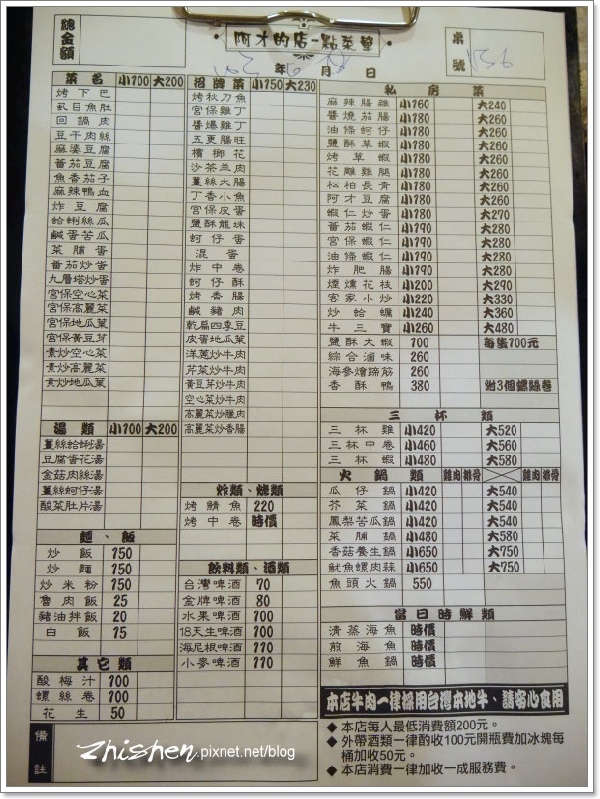 阿才的店價位比一般的百元快炒高一些些,不過在用料、料理呈現上的用心與口味是相對好上不少(今天應該只有空心菜牛肉比較不合味- -),而且在店內用餐也不用擔心有時間限制壓力的問題,算是個有平價好菜吃,又能久坐閒聊的好地方