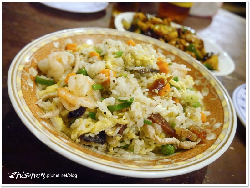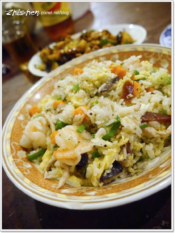 炒飯好什錦,蝦仁、木耳、香腸、肉絲、胡蘿蔔、蔥花,再以黑胡椒提味,吃起來有豐富的香氣及口感,白飯有一點點溼軟稍微可惜,但風味還算不錯