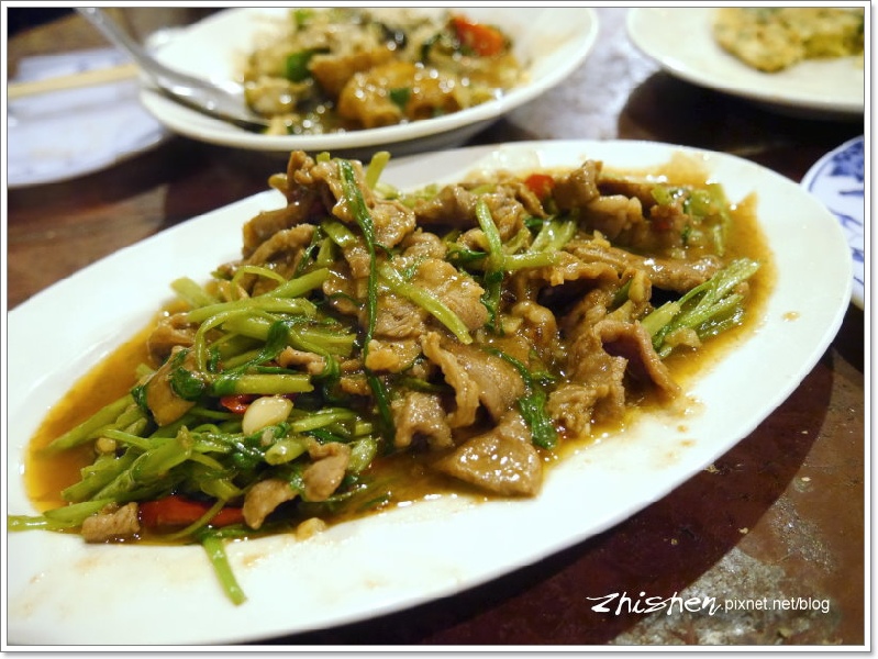 最後貪吃加點的空心菜牛肉,調味上甜鹹都偏重,反倒是沒有前面幾道熱炒來得動人~