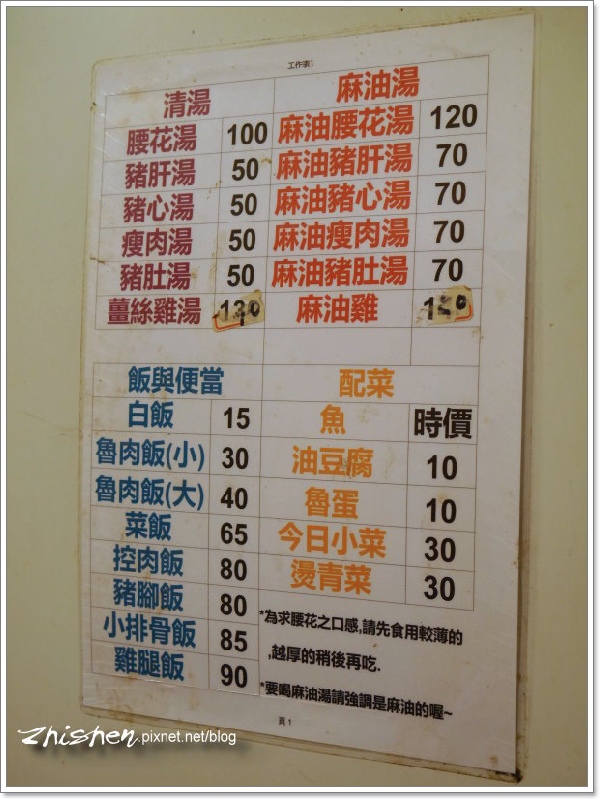 不知為何,六年後再訪,施家的麻油比較沒有讓人感覺到油膩感,實實在在的酒味清香暖胃,腰花熟度適中,彈脆的口感很不錯,也沒有異味,店內的很多客人都點這湯@@