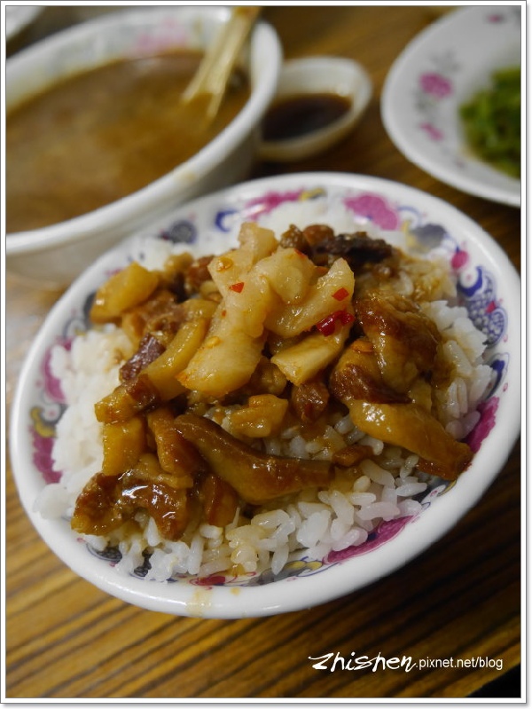 魯肉飯的白米不會軟爛,加分!經過時間熬煮出的魯肉有不錯的魯肉香,油香足而不膩口,整體的協調感很不錯。加上店家附在魯肉飯上的辣蘿蔔,甜鹹中帶點辛香,頗搭。