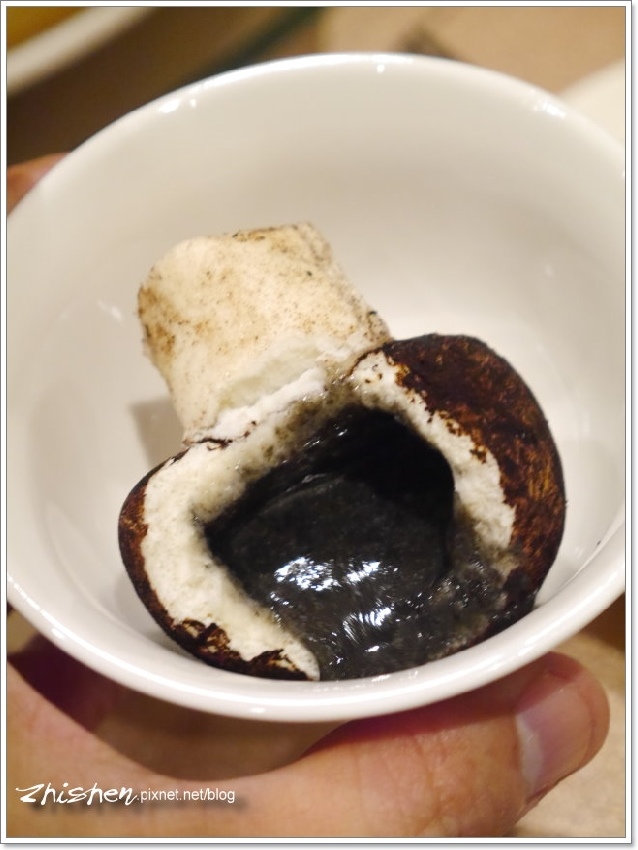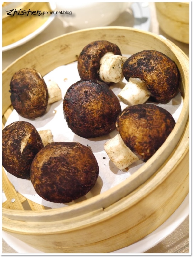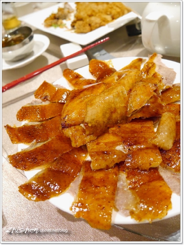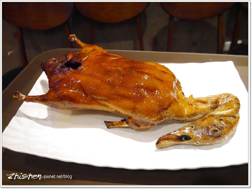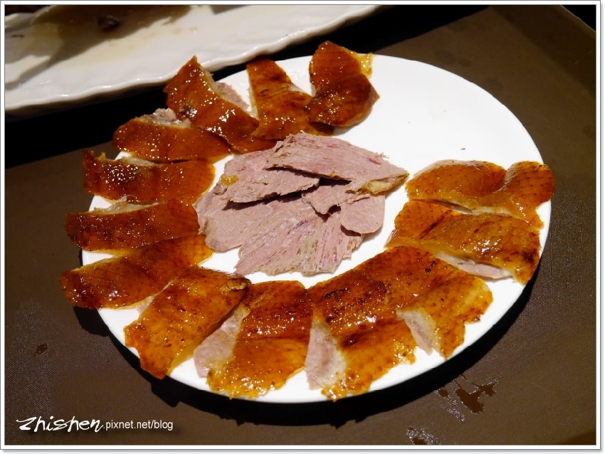 這蘑菇芝麻流沙算是今天店家小有閃失的地方,點菜時大姊也有詢問,所以也註明餐後再上,不過因為廚房師傅已先上了爐子,所以大家菜吃到一半這飯後甜點就上桌了,那時烤鴨及其它大菜正在喀,弄得有點要吃也不是,不吃也不是的,算是本日小插曲。
