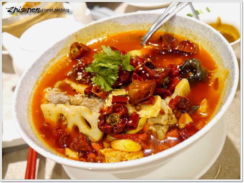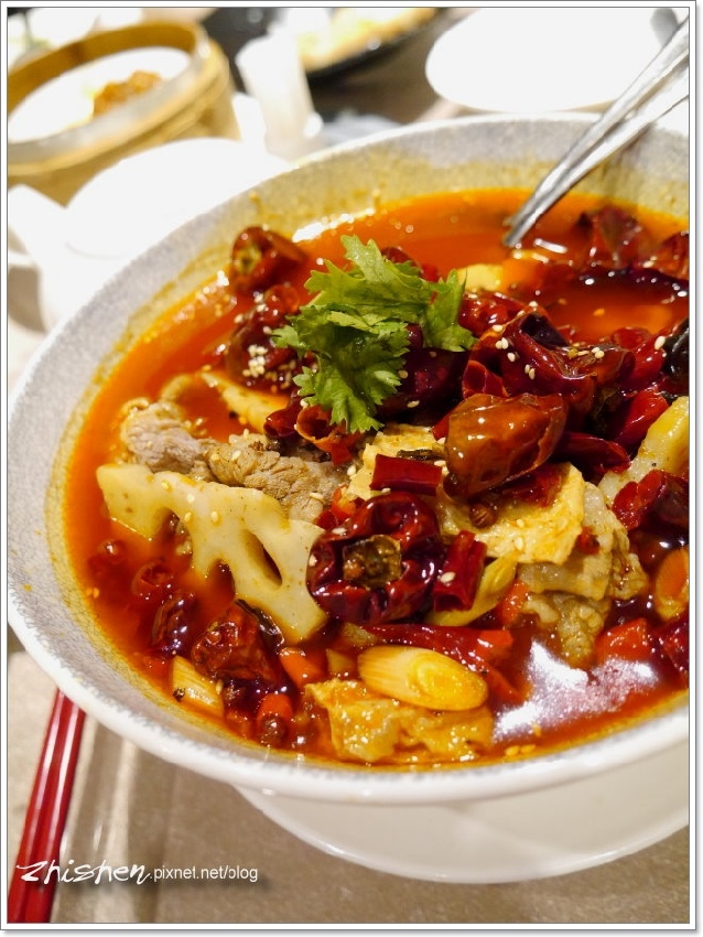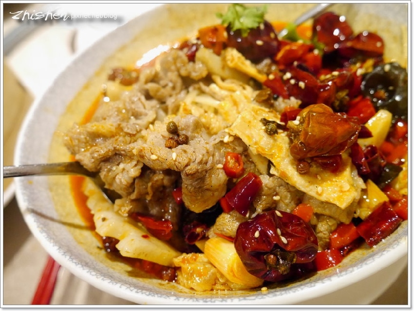 Ω美國牛肉片的油香與紅油合為一氣,肥牛豐厚的油脂感在辣味中獲得平衡,但肉味還是相當不錯,風味有點清爽又有麻辣香的湯頭,也略有後勁,如果不以辣死人不償命的路線來看的話,平衡性還算不錯。