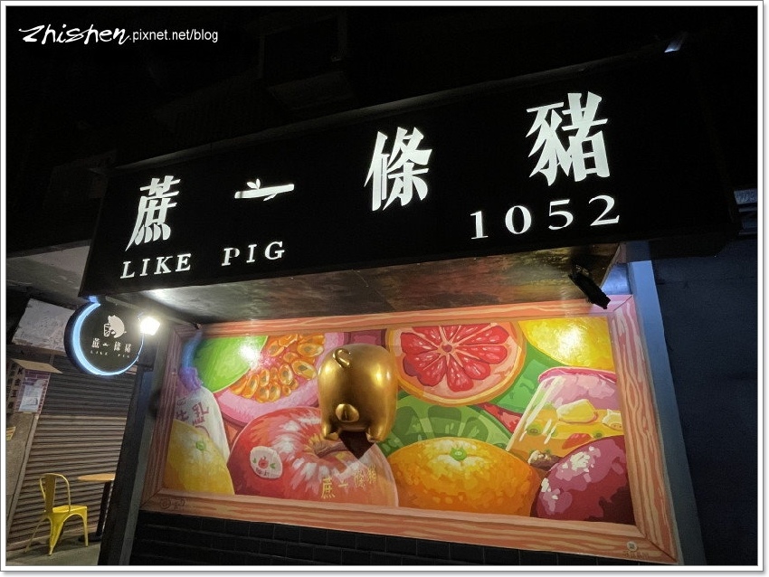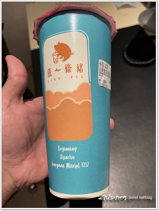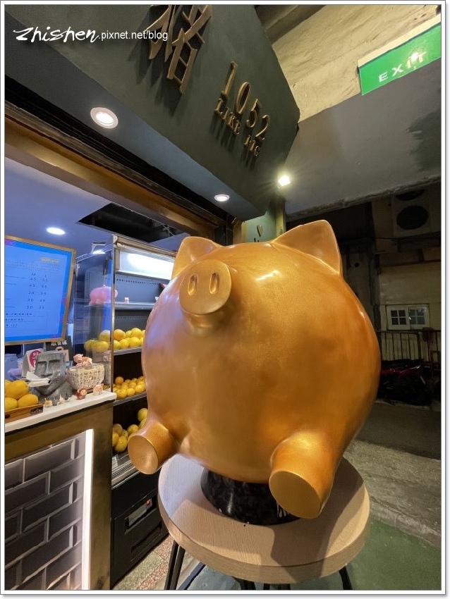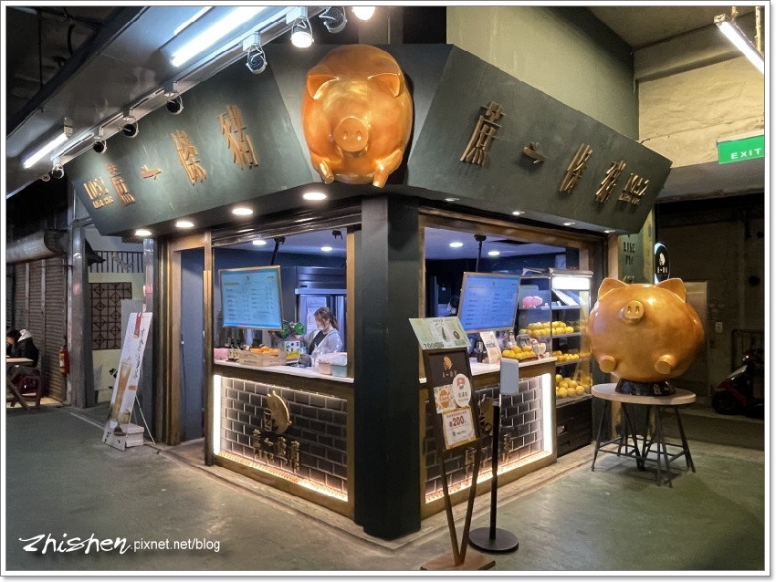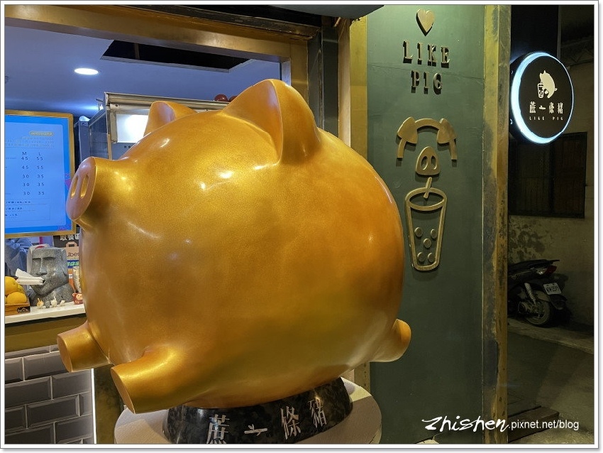 然後又跑來【蔗一條豬】買飲料,好吧,看在這招牌金豬還滿吸晴的份上,能拍個幾張照,多等一下是無妨…