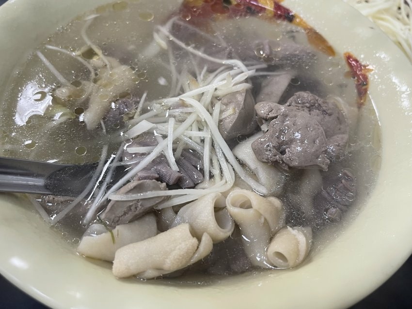 下水料以肝、胗、鵝腸為主,料多口感好,湯清無異味,後來竟然也是喝到乾了~