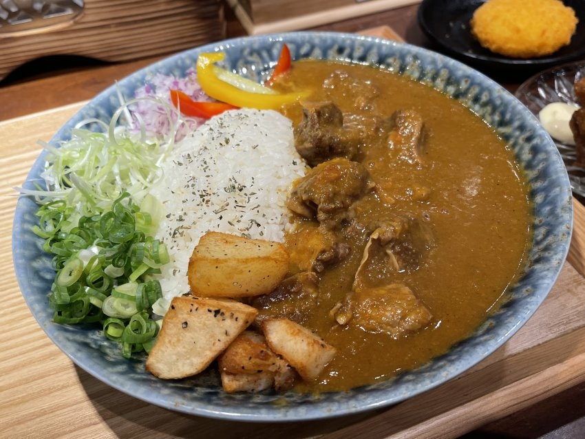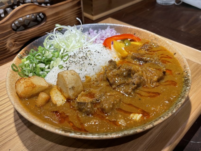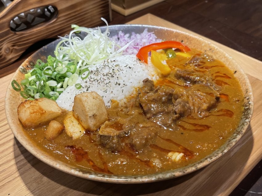 牛腩本身肉味足、口感也很漂亮,咖哩味道再吃進去,單就肉的面向來說已立於不敗之地~