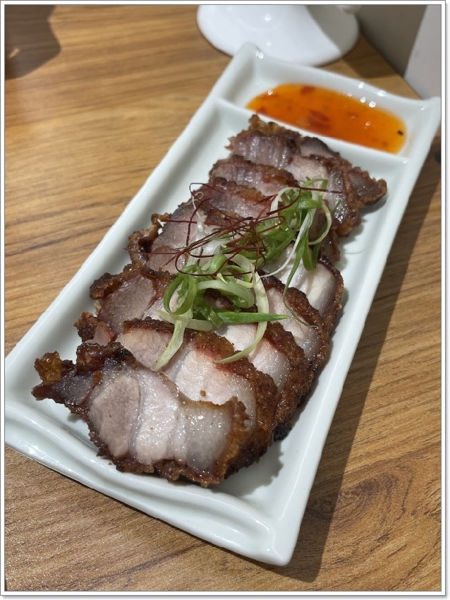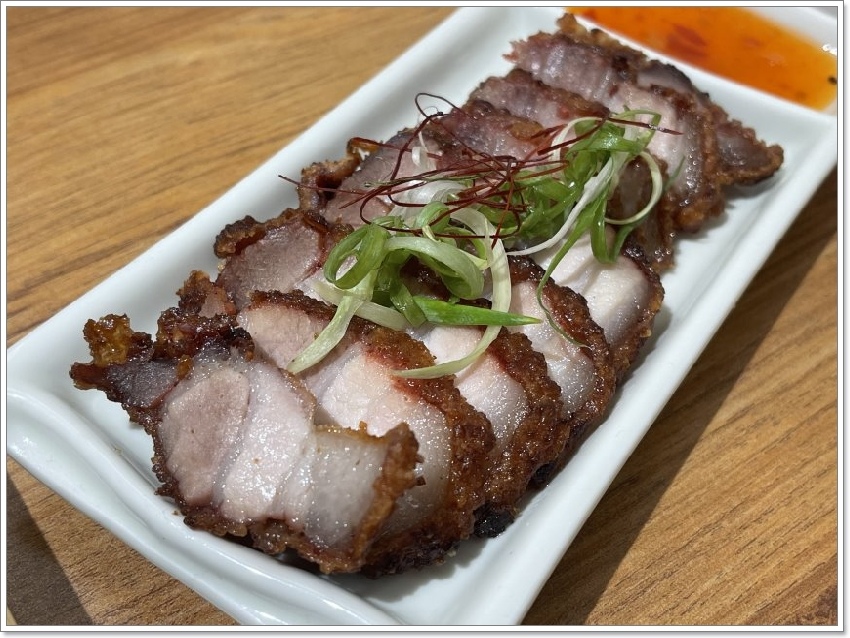 Ω松阪豬片切,炒皮蛋、花生、杏鮑菇,鹹中帶甘,小辣偏上,熱熱的吃很下飯,不過油香感略重,要速戰速決,避免微涼後帶出膩感~
