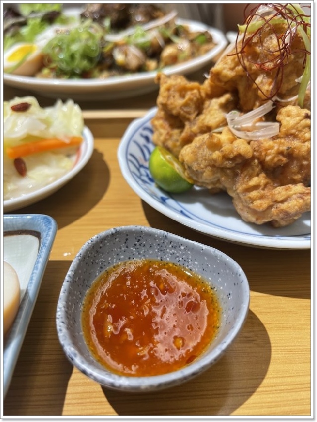 Ω雞肉應該是有事前醃製過,不過個人覺得沾著酸甜醬汁比較有味~