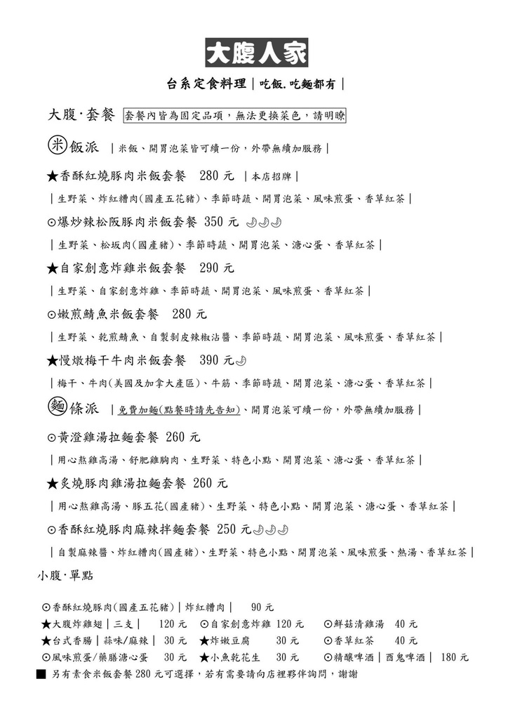 大腹有一個很有趣的營業時間,一個星期做四休三鮮為少見,主要是因為大家平時還有自已的事要忙才會這樣~只能說這樣子還能堅持開店真的是不簡單![]()