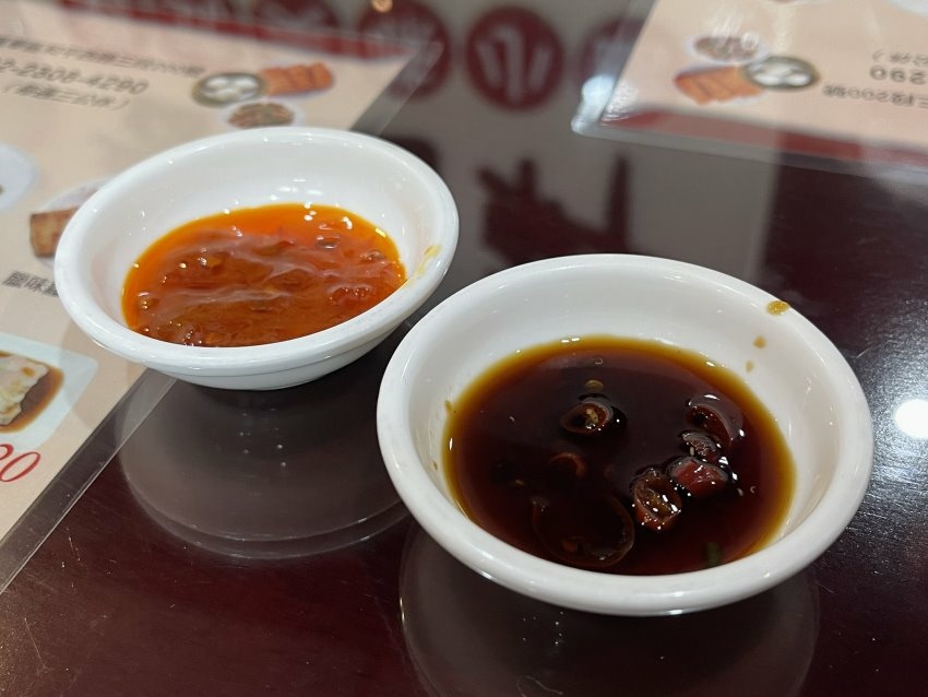 Ω餃子皮略有厚度,軟而黏的口感比較沒個性,不過蝦仁渾圓飽滿,吃起來很有料!