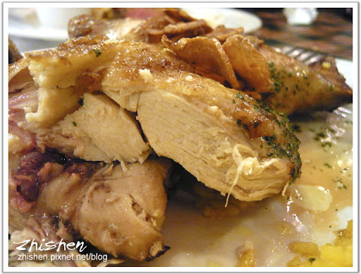 烤雞外頭的皮沒有酥脆的感覺,吃起來軟軟的,肉吃起來的感覺也沒有什麼香料入味的感覺,連雞肉單純的鮮味也嚐不太出來,雖然後來還是有將它完食,不過我以後肯定不會再點這道