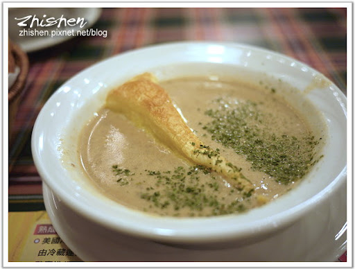 蘑菇濃湯喝起來是溫溫的,但相當濃醇,起司有或沒有我個人覺得沒太大差別,單就湯品我是覺得還可以